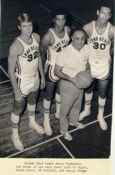 | Keywords: Jerry Tarkanian with LBSU players in 1970-71.jpg en Long Beach State men's basketball coach Jerry Tarkanian with three players in the 1970-71 season left to right Chuck Terry Ed Ratleff and George Trapp 1971 http //www daily49er com/sports/2015/02/11/erry-tarkanian-leaves-unprecedented-legacy/ prettyPhoto California State University Long Beach Athletics other versions Custom license marker 2015 02 14 PD-CAGov Uploaded with UploadWizard Jerry Tarkanian Long Beach State 49ers men's basketball players |