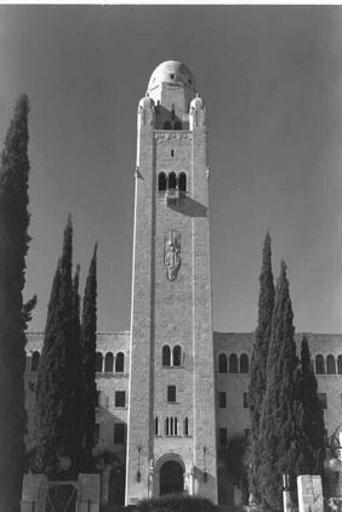 Keywords: Jerusalem International YMCA 1949.jpg en SHABAT IN JERUSALEM YMCA BUILDING State of Israel's national photo collection BRAUNER TEDDY 1949-12-02 Jerusalem International YMCA PD-old