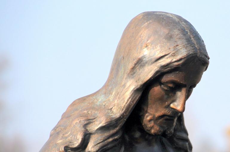 Keywords: jesus christ look down dewdrop faith symbol christianity religion face cemetery