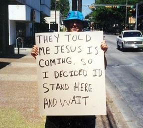 Keywords: Jesus Is Coming.jpg en One bright and beautiful Saturday morning on The University Of Texas Drag in Austin Texas I ran into this guy Jesus Is Coming 2013-08-19 18 15 47 own OpalDivine cc-zero Uploaded with UploadWizard People holding signs