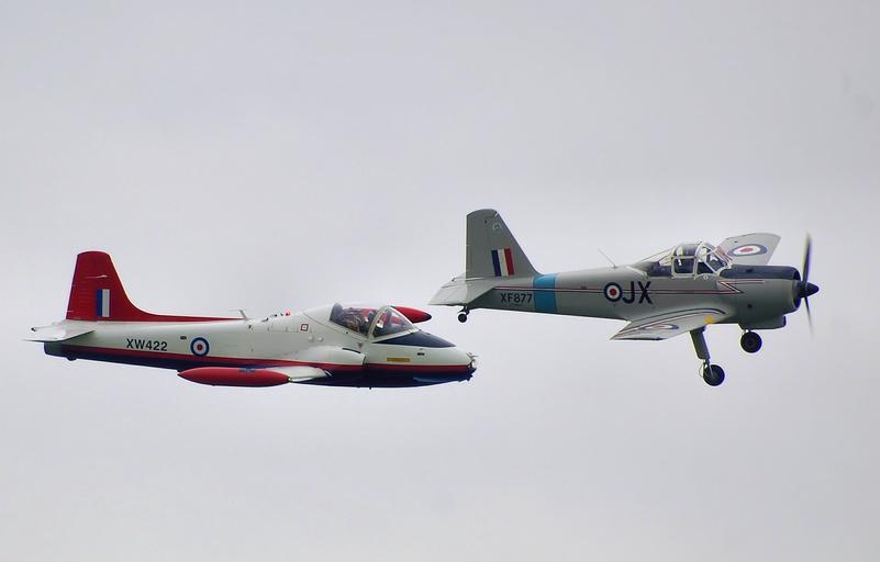 | Keywords: Jet and prop provosts arp.jpg Privately-owned Provosts jet XW422 and piston XF877 fly in formation at the 2008 Kemble Open Day Kemble Airport Gloucestershire England XF877 privately-owned piston Percival P 56 Provost T1 G-AWVF built 1955 by the Percival Aircraft Company XW422 privately-owned British Aircraft Corporation Jet Provost T 5a G-BWEB built 1971 retired from RAF use 1991 Photographed by Adrian Pingstone in September 2008 and placed in the public domain Arpingstone BAC Jet Provost RAF Percival Provost G-AWVF aircraft G-BWEB aircraft 2008 in aviation in the United Kingdom September 2008 in England |