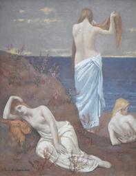 | Keywords: Jeunes filles au bord de la mer-Puvis de Chavannes-Orsay-RF 2015.jpg Artwork Q19659204 Creator Pierre-Cécile Puvis de Chavannes Title Jeunes filles au bord de la mer fr Young Girls on the Edge of the Sea 1879 Oil canvas cm 61 46 Musée d'Orsay object history Bequest of Comte Isaac de Camondo credit line accession number RF 2015 PD-old-100 Female long hair in art Female toplessness in paintings Puvis Hair care in art female human backs in art Paintings in Musée d'Orsay People at the beach in art Pierre Puvis de Chavannes 17th-century oil on canvas paintings in France 1879 paintings Orsay en partage le 21 mars 2015 |