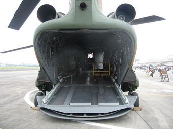 MAKE A MEME View Large Image JG-2923 rear opened.jpg Rear of CH-47J opened rear door ramp 後部ドアランプを開いた CH-47J 輸 ヘリコプター Kawasaki-Boeing CH-47J 52923 / JG-2923 Japan Ground Self-Defence Force 12th Brigade 12th Helicopter Unit 2nd ...