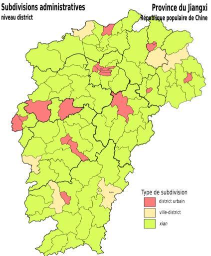 | Keywords: Jiangxi administrative divisions 2levels-fr.svg en Jiangxi China zh-hans 江西 分县图 Jiangxi svg 2010-03-26 23 14 UTC Jiangxi svg Doctoroftcm derivative work Zolo <span class signature-talk >talk</span> Added hidden layers with names and text in French Zolo Jiangxi svg zh-hans 江西 分县图 Own work by uploader Doctoroftcm Maps of Jiangxi</nowiki> Uploaded with derivativeFX Maps of Jiangxi SVG maps of China | ||||