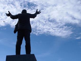 Keywords: jim larkin statue sky blue sky blue arms city cloud irish labour jim standing statue
