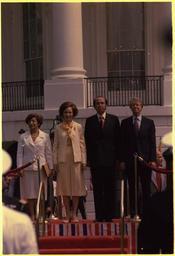 | Keywords: Jimmy Carter and Andres Perez President of Venezuela during a state arrival ceremony. - NARA - 175327.tif Scope and content General notes 175327 Local identifier President 1977-1981 Carter White House Staff Photographers 01/20/1977 - 01/20/1981 Jimmy Carter Library NLJC 441 Freedom Parkway Atlanta GA 30307-1498 1977-06-28 Record group Collection JC-WHSP Carter White House Photographs Collection 01/20/1977 - 01/22/1981 Record group ARC 1120 Carter White House Photographs Presidential compiled 01/20/1977 - 01/22/1981 Series ARC 173341 File unit State Arrival for the President of Venezuela 06/28/1977 - 06/28/1977 File unit ARC 175326 Variant control numbers NAIL Control Number NLC-WHSP-C-01896-15 yes Other versions NARA-cooperation PD-USGov Jimmy Carter with national leaders Rosalynn and Jimmy Carter State visits Carlos Andrés Pérez Blanca Rodríguez de Pérez Relations of the United States and Venezuela |