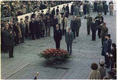 | Keywords: Jimmy Carter and Giscard d'Estaing participate in a wreathlaying ceremony at the Tomb of the Unknown Soldier at the... - NARA - 177500.tif Scope and content General notes 177500 Local identifier President 1977-1981 Carter White House Staff Photographers 01/20/1977 - 01/20/1981 Jimmy Carter Library NLJC 441 Freedom Parkway Atlanta GA 30307-1498 1978-01-04 Record group Collection JC-WHSP Carter White House Photographs Collection 01/20/1977 - 01/22/1981 Record group ARC 1120 Carter White House Photographs Presidential compiled 01/20/1977 - 01/22/1981 Series ARC 173341 File unit Arrival Orly Paris Arc de Triumph ceremony 01/05/1978 - 01/05/1978 File unit ARC 177499 Variant control numbers NAIL Control Number NLC-WHSP-C-03917-23A yes Other versions NARA-cooperation PD-USGov Jimmy Carter and Valéry Giscard d'Estaing State visits Memorial wreaths Tomb of the Unknown Soldier in Paris 1978 events in Paris January 1978 in France Arc de Triomphe de l'Étoile in the 1970s |