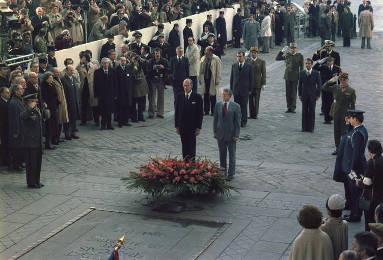 MAKE A MEME View Large Image Jimmy Carter and Giscard d'Estaing participate in a wreathlaying ceremony at the Tomb of the Unknown Soldier at the... - NARA - 177500.jpg Scope and content General notes 177500 Local identifier President 1977-1981 Carter White House Staff ...