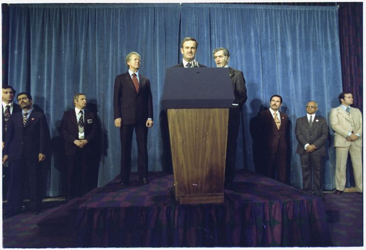 | Keywords: Jimmy Carter with Hafiz al-Asad President of Syria in Geneva, Switzerland - NARA - 174644.tif  Scope and content General notes 174644 Local identifier President 1977-1981 Carter White House Staff Photographers 01/20/1977 - 01/20/1981 Jimmy Carter Library NLJC 441 Freedom Parkway Atlanta GA 30307-1498 1977-05-09 Record group Collection JC-WHSP Carter White House Photographs Collection 01/20/1977 - 01/22/1981 Record group ARC 1120 Carter White House Photographs Presidential compiled 01/20/1977 - 01/22/1981 Series ARC 173341 File unit The President's trip to London England and Geneva Switerland 05/09/1977 - 05/09/1977 File unit ARC 174643 Variant control numbers NAIL Control Number NLC-WHSP-C-01235-5A yes Other versions <gallery>File Jimmy Carter with Hafiz al-Asad President of Syria in Geneva Switzerland - NARA - 174644 jpg Cropped JPG</gallery> NARA-cooperation PD-USGov Hafez al-Assad Jimmy Carter with national leaders NARA TIF images with categorized JPGs |