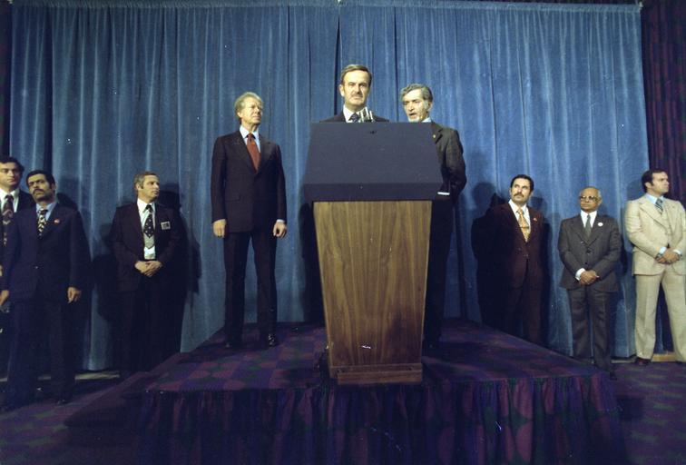 | Keywords: Jimmy Carter with Hafiz al-Asad President of Syria in Geneva, Switzerland - NARA - 174644.jpg  Scope and content General notes 174644 Local identifier President 1977-1981 Carter White House Staff Photographers 01/20/1977 - 01/20/1981 Jimmy Carter Library NLJC 441 Freedom Parkway Atlanta GA 30307-1498 1977-05-09 Record group Collection JC-WHSP Carter White House Photographs Collection 01/20/1977 - 01/22/1981 Record group ARC 1120 Carter White House Photographs Presidential compiled 01/20/1977 - 01/22/1981 Series ARC 173341 File unit The President's trip to London England and Geneva Switerland 05/09/1977 - 05/09/1977 File unit ARC 174643 Variant control numbers NAIL Control Number NLC-WHSP-C-01235-5A no Other versions <gallery>File Jimmy Carter with Hafiz al-Asad President of Syria in Geneva Switzerland - NARA - 174644 tif Original TIFF</gallery> NARA-cooperation PD-USGov Hafez al-Assad Jimmy Carter with national leaders |