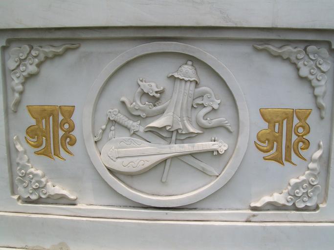 | Keywords: Jing An Temple Stone Sanskrit Ah.jpeg en Two Sanskrit Ä á¸¥ syllables on both sides of a stone carving at Jing'an Temple Shanghai China Ranjana script was developed in India and used in Buddhist art throughout East Asia The central carving depicts the four implements of the Four Heavenly Kings Skt CaturmahÄrÄja of Buddhist cosmology the guardians of Mount Sumeru The mantra is part of three displays for the three-syllable mantra oṃ Äḥ hūṃ own Tengu800 2008-01-06 13 20 05 cc-zero Jing'an Temple Sanskrit script |