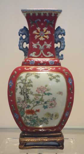 | Keywords: Jingdezhen wall vase, China, Qing dynasty, Qianlong period, 1736-1795, glazed porcelain, enamels - Royal Ontario Museum - DSC03934.JPG en Exhibit in the Royal Ontario Museum Toronto Ontario Canada This work is old enough so that it is in the public domain Photography was permitted in the museum without restriction 2013-10-08 14 16 29 own Daderot cc-zero Jingdezhen porcelain in the Royal Ontario Museum Uploaded with UploadWizard | ||||