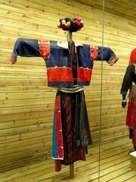 | Keywords: Jingpo woman brocade clothes - Yunnan Nationalities Museum - DSC04286.JPG Jingpo woman brocade clothes Clothing exhibited in the Yunnan Nationalities Museum Kunming Yunnan China I took this photograph 2011-08-13 02 23 10 Daderot Public domain Clothing in the Yunnan Nationalities Museum Jingpo clothing |