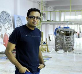 Keywords: Jitish in Studio2.jpg en Own work by uploader For Free Use Own Everyvery 2007-08-22 Male painters from India