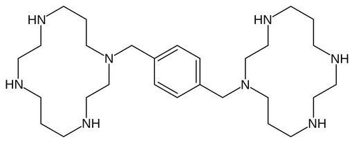 | Keywords: JM 3100.svg Skeletal formula of JM 3100 IUPAC name 1- 4- 1 4 8 11-tetrazacyclotetradec-1-ylmethyl phenylmethyl -1 4 8 11-tetrazacyclotetradecane Created using http //www acdlabs com/download/chemsk html ACD/ChemSketch 10 0 and Inkscape Own 2007-03-04 Fvasconcellos Benzene derivatives Nitrogen heterocycles Macrocyclic compounds |