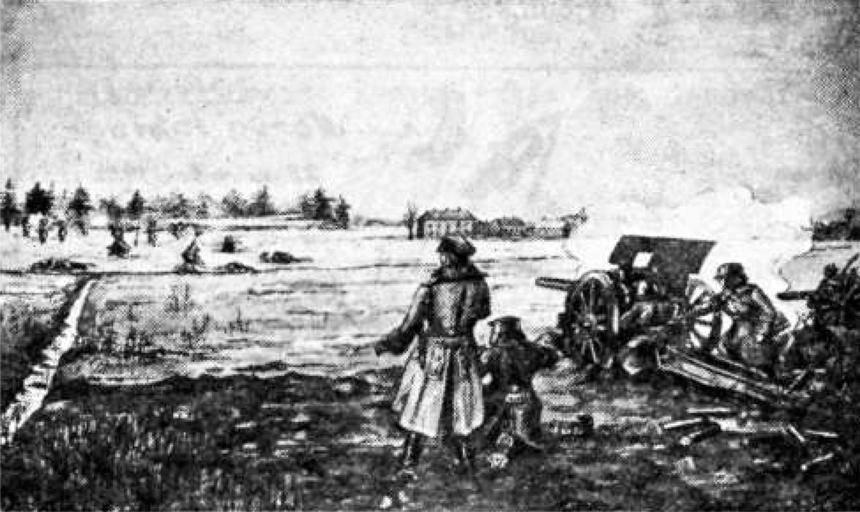 Keywords: Joala lahing 3.jpg en Battle of Joala on 28 November 1918 German battery firing canister shot at elements of 2nd Viljandi Communist Regiment assaulting from the Paemurru forest et Joala lahing 28 novembril 1918 Saksa patarei tulistab kartetšiga Paemurru metsast tungivaid 2 Viljandi kommunistliku kütipolgu osi Leets G Vabadussõja algus Narva lahing 28 novembril 1918 aastal Kaitse Kodu 1933 nr 22 lk 671 Author Battle of Joala Canister shot anonymous-EU |