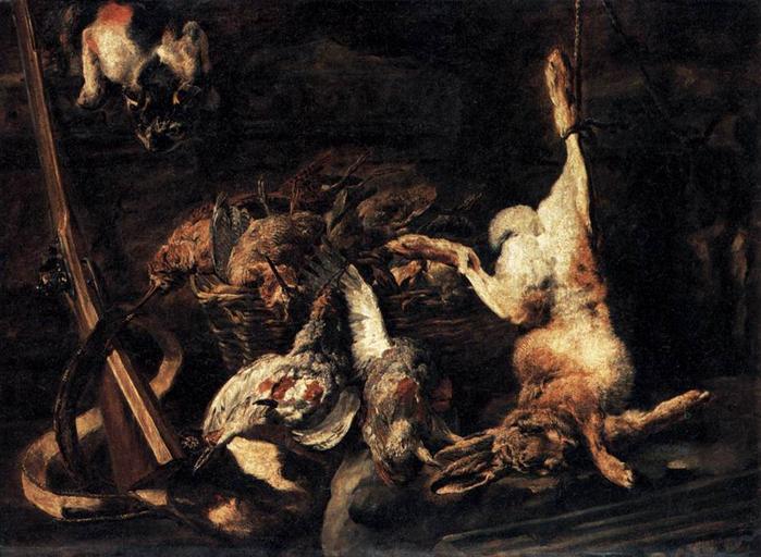 | Keywords: Joannes Fijt - Game and Hunting Gear Discovered by a Cat - WGA08351.jpg Artwork Creator Jan Fyt s 1640 Oil on canvas size cm 95 122 Institution Louvre object history credit line accession number WGA link 8351 http //www wga hu/art/f/fyt/game_cat jpg http //www wga hu/html/f/fyt/game_cat html PD-old-100 painting still-life Flemish 1601-1650 Hunting pieces by Joannes Fijt 17th-century still life paintings in France 1640s still life paintings 1640s paintings in the Louvre Flemish paintings in the Louvre Baroque still life paintings in the Louvre WGA form painting WGA type still-life WGA School Flemish WGA time period 1601-1650 Hunting trophies in art Paintings of cats 17th-century oil on canvas paintings in France Still-life paintings of dead birds Paintings of baskets |