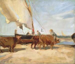 | Keywords: Joaquin Sorolla y Bastida - En la playa de Valencia.jpg Artwork Creator Joaquín Sorolla 1910 oil canvas cm 47 5 56 1 object history credit line exhibition history Chicago The Art Institute of Chicago Paintings by Joaquín Sorolla y Bastida 14 February - 12 March 1911 no 146 <br/>St Louis The City Art Museum of St Louis Paintings by Joaquín Sorolla y Bastida 14 February - 20 March 1911 no 145 J Sorolla 1910 ~ lower left signature / date En la playa de Valencia ~ verso title accession number Christie's online 4380711 6961 7 London 18 November 2004 PD-old-auto-1923 1923 DEFAULTSORT Sorolla beach and cattle 1910 Christie's 2004 People at the beach in art by Joaquín Sorolla People with cattle in art by Joaquín Sorolla Paintings of boats by Joaquín Sorolla 1910 paintings in Spain Paintings of men with cattle |