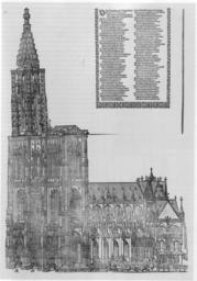 | Keywords: Jobin Strasbourg cathedral 1574.JPG Der Straßburger Münster Holzschnitt 1574 Verlag Bernard Jobin Straßburg Zum Begleittext siehe Wikisource Strasbourg cathedral Woodcut 1574 published by Bernard Jobin Strasbourg With accompanying poem or rhymed history see Wikisource /Scan by McLeod Reproduction of a painting that is in the public domain because of its age PD-old-100 Historic views of Notre-Dame de Strasbourg 16th-century woodcuts | ||||