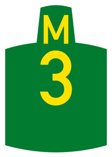 Keywords: Joburg road M3.svg en Johannesburg M3 road sign own Htonl based on the SADC Road Traffic Signs Manual Volume 4 page 4 3 13 2016-03-23 Signs for roads numbered 3 Diagrams of metropolitan road number signs of Johannesburg