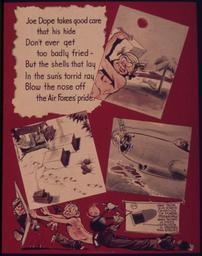 | Keywords: "Joe Dope takes good care that his hide Don't ever get too badly fried" - NARA - 514692.jpg Scope and content General notes 514692 Local identifier 44-PA-1143CC Office for Emergency Management Office of War Information Domestic Operations Branch Bureau of Special Services 03/09/1943 - 09/15/1945 NARA-Author Eisner Will 1917- Artist 1835939 <br /> Still Picture Records Section Special Media Archives Services Division NWCS-S National Archives at College Park 8601 Adelphi Road College Park MD 20740-6001 1941 - 1945 Record group Record Group 44 Records of the Office of Government Reports 1932 - 1947 Record group ARC 373 World War II Posters compiled 1942 - 1945 Series ARC 513498 File unit File unit ARC Variant control numbers NAIL Control Number NWDNS-44-PA-1143CC Other versions <gallery> File Joe_Dope_takes_good_care_that_his_hide_Don't_ever_get_too_badly_fried _-_NARA_-_514692 tif tif File Joe_Dope_takes_good_care_that_his_hide_Don't_ever_get_too_badly_fried _-_NARA_-_514692 jpg jpg </gallery> NARA-cooperation PD-USGov World War II posters from the United States |