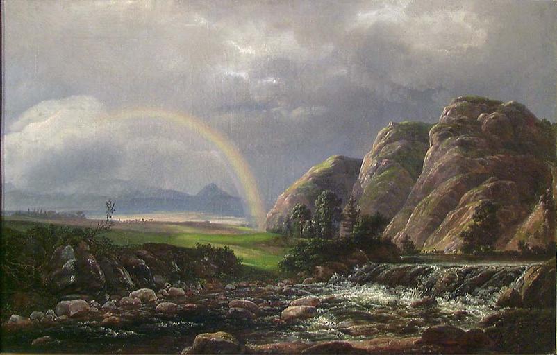 | Keywords: Johan Christian Claussen Dahl - Landskap med regnbue, Plauenscher Grund (1819).jpg Artwork creator Johan Christian Claussen Dahl 1819 Oil canvas cm 35 53 5 Institution Nasjonalgalleriet object history no Kjøpt av P F Steensballe i 1884 en Bought from P F Steensballe in 1884 credit line exhibition history Dahl and Friedrich Romantic Landscapes 21 accession number NG M 00310 http //digitaltmuseum no/things/landskap-med-regnbue-plauenscher-grund-maleri/NMK-B/NG M 00310 query Johan+Christian+Dahl search_context 1 page 8 count 1843 pos 185 digitaltmuseum no Q21976378 PD-old-100-1923 1857 DEFAULTSORT Dahl Landscape with rainbow Plauenscher Grund Paintings by Johan Christian Clausen Dahl in the Nasjonalgalleriet 19th-century landscape paintings of Germany by Johan Christian Clausen Dahl Paintings of Plauenscher Grund Oil paintings by Johan Christian Clausen Dahl Rainbows in paintings 19th-century oil on canvas paintings of landscapes in Norway 1810s landscape paintings 1810s paintings by Johan Christian Clausen Dahl 1819 paintings in Norway Dahl and Friedrich Romantic Landscapes |