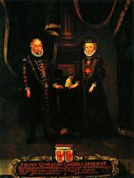 | Keywords: Johann Georg.jpg Artwork anonymous de Johann Georg Kurfürst von Brandenburg 1525-1598 und seine zweite Gemahlin Sabina Markgräfin von Bayreuth 1529-1575 Sammlung Gripsholm ca 1625 oil on canvas Nationalmuseum Stockholm http //collection nationalmuseum se/eMuseumPlus service ExternalInterface module collection objectId 15282 viewType detailView Nationalmuseum Stockholm object history Övertagande 1866 från Gripsholms slott accession number NMGrh 612 Preußen - Versuch einer Bilanz Ausstellungskatalog in 5 Bänden hrsg von Gottfried Korff Berlin 1981 Bd 1 S 89 PD-old-100-1923 Portraits in the Nationalmuseum Stockholm John George Elector of Brandenburg Double portrait paintings of wedded couples Johann Georg House of Hohenzollern |