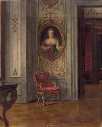 | Keywords: Johann Hamza Interieur mit Porträtbild.jpg Interieur mit Porträtbild Kaiserin Maria Theresia J Hamza “Wien signature/place oil on canvas 34 x 27 cm http //www dorotheum com Dorotheum by 1927 Johann Hamza 1850 “1927 PD-old-70 Images from Dorotheum Johann Hamza Rococo revival paintings Interiors of palaces in art Portrait paintings of Maria Theresa of Austria Ermine clothing in art Schloss Hetzendorf | ||||