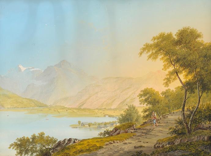 Keywords: Johann Heinrich Bleuler Aussicht von Wesen gegen Nasels am Wallenstattersee.jpg Aussicht von Weesen Kanton St Gallen gegen Näfels Kanton Glarus über den Walensee und das Gäsi im Hintergrund Bildmitte Wiggis links hinten Vorderglärnisch Signiert Datiert 1820 Betitelt Gouache 53 x 70 cm http //www duesseldorfer-auktionshaus de/ Düsseldorfer Auktionshaus 1820 Creator Johann Heinrich Bleuler PD-old-100 Images from Düsseldorfer Auktionshaus Johann Heinrich Bleuler Landscape paintings of Switzerland 1820 paintings Gouache paintings Historical images of Walensee Weesen Escherkanal Historical images of the canton of Glarus Historical images of the canton of St Gallen |