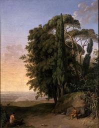 | Keywords: Johann Heinrich Wilhelm Tischbein - Landschaft bei Frascati.jpg Artwork Creator Johann Heinrich Wilhelm Tischbein Landschaft bei Frascati Römische Abendlandschaft eine Gruppe von Pinien und Cypressen bei Frascati mit einem Blick auf die Campagna; im Vordergrunde zwei antike Schäfer Roman panorama di sera un gruppo di pini e cipressi a Frascati con una vista della Campagna in primo piano due antico pastore 1783 oil on canvas cm 61 6 48 Schlossmuseum Schloss Friedenstein dal vero in Frascati J H W Tischbein unten rechts object history credit line accession number SG 1127 13850009 PD-old-100 Johann Heinrich Wilhelm Tischbein Schlossmuseum Gotha Landscape paintings of Italy 1780s landscape paintings |