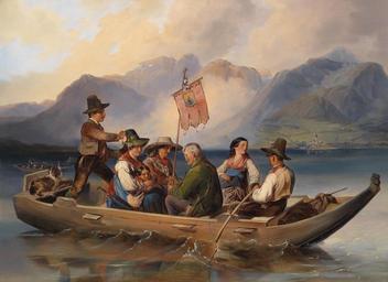 | Keywords: Johann Matthias Ranftl Überfahrt am Wolfgangsee.jpg à berfahrt am Wolfgangsee oil on canvas 58 x 79 cm http //www dorotheum com Dorotheum by 1854 Creator Johann Matthias Ranftl PD-old-100 Images from Dorotheum Johann Matthias Ranftl Wolfgangsee in art Boats in art Religious standards Transport in Salzburg state Transport in Upper Austria |