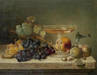 | Keywords: Johann Wilhelm Preyer Still life of fruit nuts and a glass on a marble ledge.jpg Artwork Creator Johann Wilhelm Preyer Stilleben mit Früchten Nüssen und einem Glas auf einem Marmorsims 1858 oil canvas cm 30 38 object history Collection of Mr B W F van Riemsdijk director of the Rijksmuseum Amsterdam from 1897 to 1922<br/>Thence by descent JWPreyer 1858 lower left signature and date http //www bonhams com/auctions/19923/lot/26/ Bonhams London 11 Jul 2012 lot 26 other versions PD-old-100 Images from Bonhams Johann Wilhelm Preyer 1858 paintings Still life paintings of fruits Paintings of grapes 1850s still-life paintings |