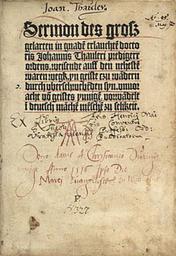 | Keywords: Johannes Tauler, Predigten.jpg Editio princeps der Predigten von Johannes Tauler Druck Konrad Kachelofen Leipzig 17 März 1498; Universitätsbibliothek Leipzig Off Lips Ka 34 GW M45246 http //www ub uni-leipzig de/site php page allgemein/ausstellungen/buecherschau_bilder lang de stil fc 1498 http //www ub uni-leipzig de/site php page allgemein/ausstellungen/buecherschau_bilder lang de stil fc PD-old-100 Original upload log de wikipedia Ireas CommonsHelper page de wikipedia Johannes_Tauler 2C_Predigten jpg 2009-04-26 12 59 Anamnesis 265×387× 44729 bytes <nowiki> Information Titelblatt der Editio princeps der Predigten von Johannes Tauler Druck Konrad Kachelofen Leipzig 17 März 1498; Universitätsbibliothek Leipzig Off Lips Ka 34 GW M45246 http //www ub uni-lei</nowiki> Tauler Predigten 1522 Collections of the Universitätsbibliothek Leipzig |