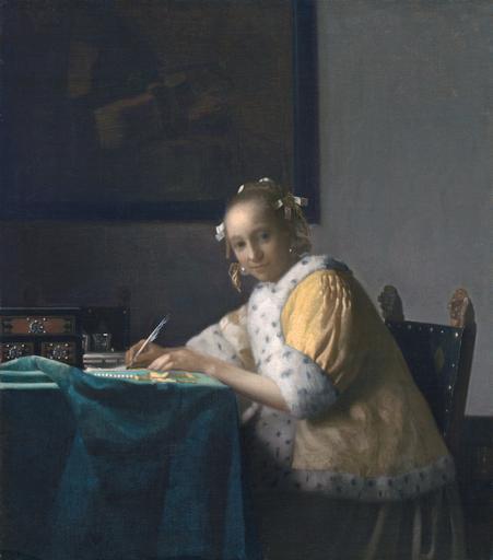 | Keywords: Johannes Vermeer - A lady writing (c 1665-1666).jpg Artwork LangSwitch A lady writing Schrijvend meisje oil canvas cm 45 39 9 Washington D C National Gallery of Art centre left IVMeer object history Provenance by 1674 Pieter van Ruijven 1624-1674 Delft ProvenanceEvent 1674 inheritance Maria de Knuijt 1681 Delft ProvenanceEvent 1681 inheritance Magdalena van Ruijven 1682 Delft ProvenanceEvent 1682 inheritance Jacob Dissius 1695 ProvenanceEvent 1696-05-16 sale Jacob Dissius Amsterdam J van Buren The Hague ProvenanceEvent 1808-11-07 sale J van Buren Scheurleer The Hague Dr Cornelis Jan Luchtmans 1777-1860 Rotterdam ProvenanceEvent 1816-04-20 sale Dr Cornelis Jan Luchtmans Muys Rotterdam by 1819 F Kamermans Rotterdam ProvenanceEvent 1825-10-03 sale Lelie F Kamermans Lamme Rotterdam ProvenanceEvent 1827-04-05 sale Hendrik Reydon et al Jer de Vries Amsterdam François-Xavier comte de Robiano 1778-1836 Brussels ProvenanceEvent 1837-05-01 sale J HĂ©ris François-Xavier comte de Robiano BarbĂ© Brussels acquisition Ludovic comte de Robiano †1887 Brussels J HĂ©ris - 1888 1906 LangSwitch the estate of de erven Ludovic comte de Robiano by 1907 J A LeRoy Brussels ProvenanceEvent 1907 acquisition John Pierpont Morgan 1837-1913 NYC G S Hellman ProvenanceEvent 1913 inheritance John Pierpont Morgan Jr 1867-1943 NYC Nassau Bahamas ProvenanceEvent 1943 inheritance Lady Eunice Oakes †1946 Nassau Bahamas ProvenanceEvent 1946 acquisition M Knoedler Co NYC ProvenanceEvent 1946 purchase Horace Havemeyer †1956 NYC ProvenanceEvent 1956 inheritance Harry Waldron Havemeyer LangSwitch and en Horace Havemeyer Jr NYC ProvenanceEvent 1962 gift National Gallery of Art Washington D C Harry Waldron Havemeyer LangSwitch and en Horace Havemeyer Jr NYC The National Gallery of Art 1962 10 1 ~ 1665-1666 Creator Johannes Vermeer Other versions <gallery> File A Lady Writing by Johannes Vermeer 1665-6 png File Vermeer A Lady Writing jpg </gallery> PD-old-100 A Lady Writing by Johannes Vermeer 166501 Rabbit clothing in art Fur trimmings Paintings by Johannes Vermeer with fur Fur fashion in 1665 |