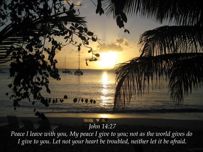Peace I leave with you, My peace I give to you; not as the world gives do I give to you. Let not your heart be troubled, neither let it be afraid.