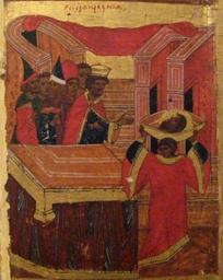 | Keywords: John Baptist N.Novdorod detail 4.jpg Иоанн К еститель Ангел Пустыни с житием в 18 клеймах John The Baptist Angel of Desert with 18 scenes of life own own photo century 16 anonimous Nizhiy Novgorod school PD-Art Icons in Art Museum of Nizhny Novgorod Uploaded by Shakko/Photos Icons of John the Baptist's head John the Baptist hagiography icons |