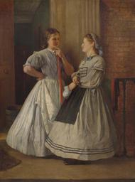 | Keywords: John Finnie. Maids of All Work, 1864-65.jpg Two maids chatting at a door one with a broom the other holding a jug Both wearing crinolines 1864-65 oil on canvas 58 x 42 7 cm The Geffrye Museum British Institution in 1865 catalogue number 628 Purchased by the Geffrye in 1981 from the Christopher Wood Gallery Signed and dated in bottom right corner 'J Finnie 1864-5' 39/1981 http //www magnoliabox com/art/529105/maids-of-all-work PD-old-100-1923 1907 Uploaded with UploadWizard Maids in art Maids in the United Kingdom Crinolines in art Fashion in 1865 Paintings in the Geffrye Museum |