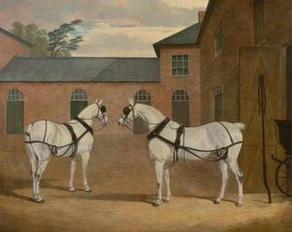 | Keywords: John Frederick Herring - Grey carriage horses in the coachyard at Putteridge Bury, Hertfordshire - Google Art Project.jpg No inscription Inscription _Signed_and_Dated Signed and dated lower left J F Herring 1838 Not on View Oil on canvas animals equestrian horses animals riding horseback riding harness sporting art special url_id ogHRw4_nCyT0fw PD-old-100-1923 1865 Google Art Project works by John Frederick Herring John Frederick Herring Sr 1838 paintings 19th-century paintings of horses Paintings of white horses Paintings in the Yale Center for British Art |
