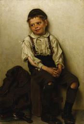 | Keywords: John George Brown - Daydreaming (The Shoe Shine Boy).jpg 1885 oil canvas in 24 25 16 25 object history credit line Provenance McDonough Family Chicago Illinois; E M Stotlar Marion Illinois; O Stotlar Marion Illinois; Newhouse Galleries New York NY; Mr and Mrs F Howard Walsh Fort Worth Texas; Walsh Family Art Trust Signed lower left 'Copyright J G Brown N A ' accession number http //fineart ha com/c/item zx saleNo 638 lotNo 24004 Heritage Auctions PD-old-100 John George Brown Shoeshiners in art Paintings of boys 1885 paintings Images from Heritage Auctions Daydreams in art |