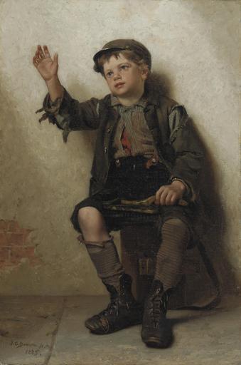 | Keywords: John George Brown - Shine, Sir.jpg Artwork Creator John George Brown 1885 oil canvas cm 61 41 3 object history credit line Provenance Private collection circa 1985 - Sotheby's New York 14 March 2001 lot 40 - Private collection Maryland acquired from the above - Estate of the above signed and dated 'J G Brown N A /1885 ' lower left accession number Christie's online 5652467 PD-old-auto-1923 1913 John George Brown Shoeshiners in art Paintings of boys 1880s paintings in the United States | ||||