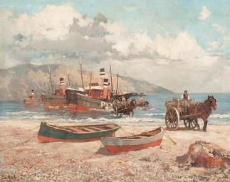 | Keywords: John Gleich - Kähne auf einem Strand.jpg > 1927 oil canvas cm 65 81 accession number object history credit line John Gleich ~ lower left signature http //www arcadja com/auctions/en/private/gleich_john/artworks/50795/0/ Balclis Barcelona May 15 2013 lot 1398 via ARCADJA auction results PD-old-auto-1923 1927 John Gleich Oil paintings of seascapes Beaches in art |