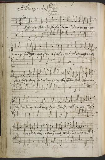 Keywords: John Hilton - Rise, princely shepherd - British Library Add MS 11608 f35v.jpg A handwritten page folio 35v from BL Add MS 49626 an untitled collection of songs and catches by John Hilton and others This page contains Rise princely shepherd by Hilton and is in the composer's own hand Held and digitised by the British Library circa 1640 1660 Ink on paper 30x19 cm Institution British Library object history exhibition history credit line accession number Add MS 11608 f 35v British Library image Add MS 11608 PD-old PD-US John Hilton Musical autographs British Library musical manuscripts British Library images not yet checked British Library Additional Manuscripts music |