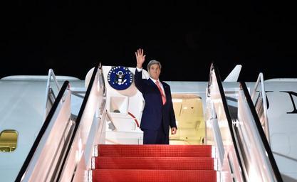 | Keywords: John Kerry leaves for Egypt July 2014.jpg en U S Secretary of State John Kerry waves goodbye as he departs from Andrews Air Force Base in suburban Washington in the early morning hours of July 21 2014 en route to Egypt in support of efforts to reach a cease-fire between Israel and Hamas amid their battle in Gaza 2014-07-21 01 04 09 https //www flickr com/photos/statephotos/14729302143/ U S Department of State U S Department of State http //flickr com/photos/9364837 N06/14729302143 2014-07-23 22 50 27 United States Government Work PD-USGov Uploaded with UploadWizard John Kerry travels to Cairo Jerusalem Ramallah Tel Aviv and Paris on July 21-26 2014 2014 in Egypt |