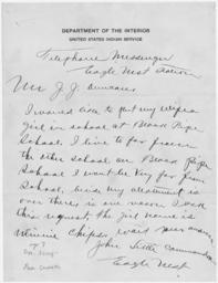 | Keywords: John Little, Commander, Eagle Nest Station, to J.J. Duncan. - NARA - 284030.tif Scope and content General notes Request for child to attend Black Pipe Day School 284030 Local identifier Department of the Interior Office of Indian Affairs Pine Ridge Agency 1878 - 09/17/1947 NARA's Central Plains Region Kansas City NREA 400 West Pershing Road Kansas City MO 64108 other date ~ 1910 Record group Record Group 75 Records of the Bureau of Indian Affairs 1793 - 1999 Record group ARC 404 Correspondence of the Day School Inspector J J Duncan compiled 02/09/1910 - 09/06/1916 Series ARC 283922 File unit Correspondence of Day School Inspector J J Duncan February 9 1910 to December 13 1910 02/09/1910 - 12/13/1910 File unit ARC 284015 Variant control numbers NAIL Control Number NRE-75-169-C-15 yes Other versions NARA-cooperation PD-USGov Pine Ridge Day Schools |