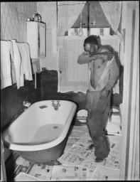 | Keywords: John R. Blaney, coal leader, undresses to take his bath. His is the only bathroom in ... camp. He has been with... - NARA - 540937.tif Scope and content General notes 540937 Local identifier 245-MS-1803L Department of the Interior Solid Fuels Administration For War 04/19/1943 - 06/30/1947 NARA-Author Lee Russell 1903-1986 Photographer 2489414 <br /> Still Picture Records Section Special Media Archives Services Division NWCS-S National Archives at College Park 8601 Adelphi Road College Park MD 20740-6001 1946-08-22 Record group Record Group 245 Records of the Solid Fuels Administration for War 1937 - 1948 Record group ARC 572 Photographs of the Medical Survey of the Bituminous Coal Industry compiled 1946 - 1947 Series ARC 540230 File unit File unit ARC Variant control numbers NAIL Control Number NWDNS-245-MS-1803L yes Other versions <gallery> File John_R _Blaney _coal_leader _undresses_to_take_his_bath _His_is_the_only_bathroom_in_ _camp _He_has_been_with _-_NARA_-_540937 tif tif File John_R _Blaney _coal_leader _undresses_to_take_his_bath _His_is_the_only_bathroom_in_ _camp _He_has_been_with _-_NARA_-_540937 jpg jpg </gallery> NARA-cooperation PD-USGov 1946 in West Virginia Bathrooms in the United States Coal miners Russell Lee Undressing men People with partially unzipped or unbuttoned clothes Coal mining in the United States NARA TIF images with categorized JPGs |
