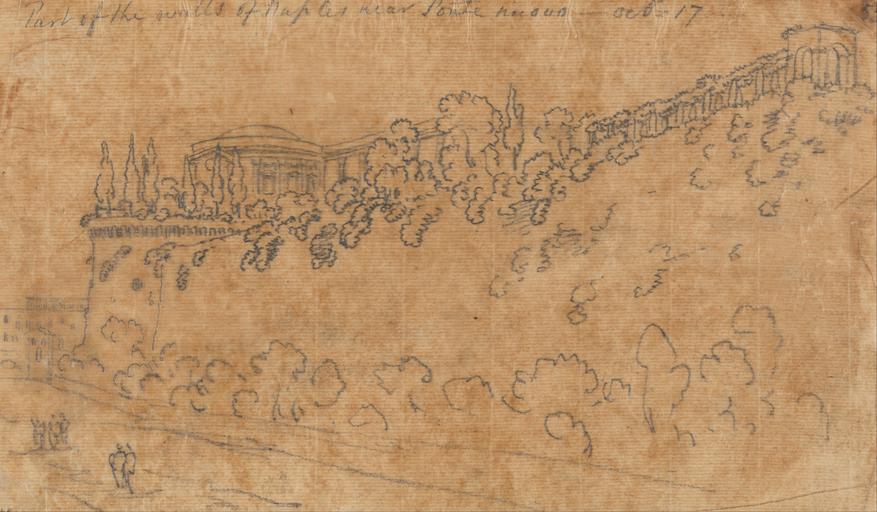 Keywords: John Robert Cozens - Part of the Walls of Naples near Ponte Nuovo, 17 October - Google Art Project.jpg Inscribed in graphite upper left to upper center Part of the walls of Naples near Ponte nuovo - Oct 17 ; in graphite upper right 55 ; in graphite lower left 45 Inscription _Signed_and_Dated not signed Not on View Graphite and varnish on thin slightly textured cream laid paper Grand Tour walls temples trees landscape special url_id MQFFfFI_vWgRpA PD-old-100-1923 1799 Naples by John Robert Cozens Google Art Project works by John Robert Cozens Walls in Naples |