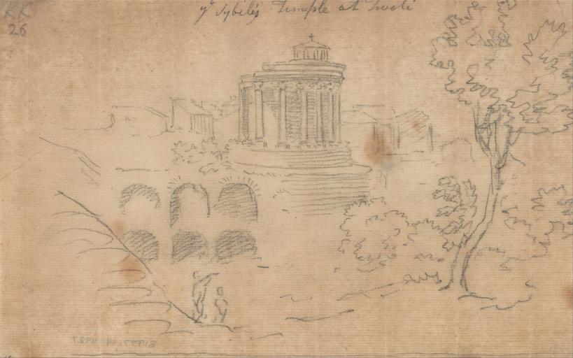 | Keywords: John Robert Cozens - Ye Sybil's Temple at Tivoli - Google Art Project.jpg Inscribed in graphite upper left KK 26 ; in graphite upper center ye Sybil's Temple at Tivoli ; in graphite lower left 16 Inscription _Signed_and_Dated not signed Not on View Graphite and varnish on thin slightly textured cream laid paper architectural subject Grand Tour columns arches temples trees buildings landscape special url_id SQHncSpI9kBVPA PD-old-100-1923 1799 Lazio in art by John Robert Cozens Google Art Project works by John Robert Cozens |