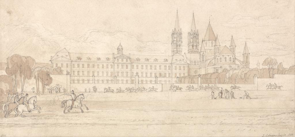 | Keywords: John Sell Cotman - Abbaye Aux Hommes, Caen - Google Art Project.jpg Inscribed in graphite upper left 17 ; lower right J Cotman Aug 13 1818 ; lower left 1 18 ; lower left 18 ; lower left Military School and Abbey Church of St Stephen at Caen ; lower right Wal ; in red crayon lower center 52 Inscription _Marks Collector's Mark RIBA blind embossed stamp Inscription _Signed_and_Dated Signed and dated in graphite lower right J Cotman Aug 13 1818 Not on View Graphite and brown wash on medium slightly textured beige wove paper architectural subject school special url_id IwFtyAnJGMJEUA PD-old-100-1923 1842 Normandy by John Sell Cotman Google Art Project works by John Sell Cotman Abbaye aux Hommes Caen Historical images of Caen |