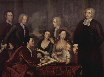 | Keywords: John Smibert 001.jpg John Smibert self-portrait Artwork creator John Smibert LangSwitch Die Bermuda-Gruppe Familienporträt des Dekan George Berkeley The Bermuda Group Dean Berkely and His Entourage - 1728 1739 Oil on canvas cm 176 5 236 2 Institution Yale University Art Gallery Object history ProvenanceEvent 1728 commission John Wainwright ProvenanceEvent 1808 gift Yale University Art Gallery New Haven Isaac Lothrop 1736-1808 Plymouth Massachusetts The Yorck Project 10 000 Meisterwerke der Malerei DVD-ROM 2002 ISBN 3936122202 Distributed by DIRECTMEDIA Publishing GmbH 1808 1 http //mail wikipedia org/pipermail/wikide-l/2005-April/012195 html Other versions <gallery>File John Simbert - Dean Berkely and His Entourage jpg Version from cgfa sunsite dk</gallery> PD-old-100 PD-Art-YorckProject ImageNote 1 18 167 256 346 2024 1512 2 John Smibert self-portrait ImageNoteEnd 1 The Bermuda Group - Dean Berkely and His Entourage John Smibert |