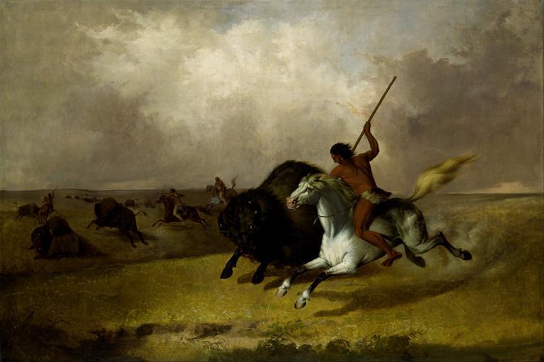 Keywords: john stanley painting oil on canvas artistic nature outside sky clouds landscape indians native americans horses hunting buffalo bison